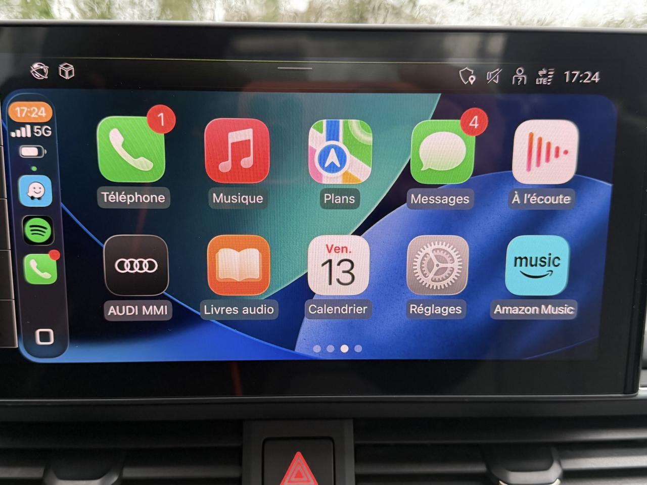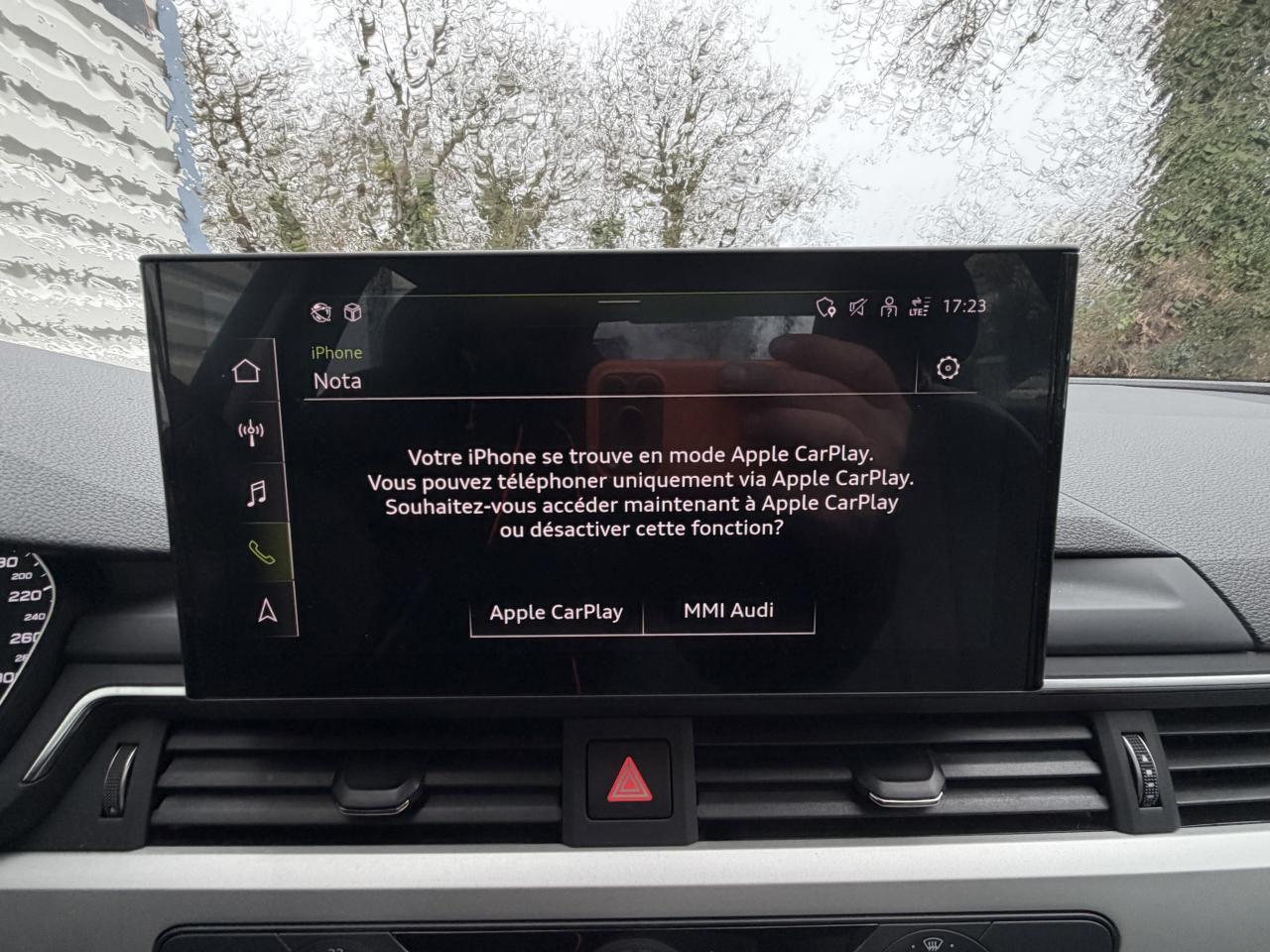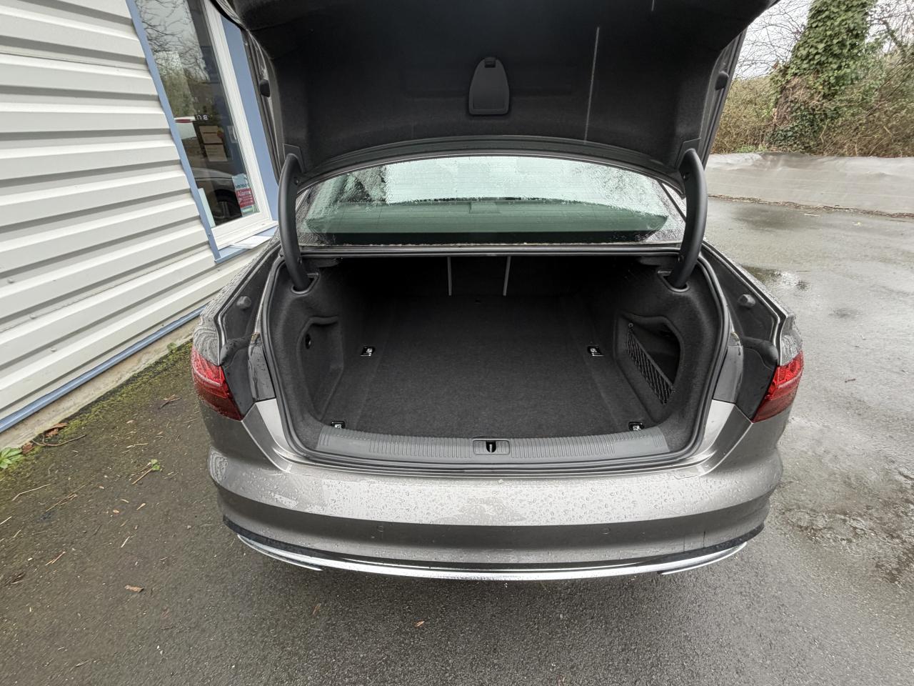 Direction assistée électromécaniqueBlocage électronique de différentiel (EDS)Antipatinage ASR pour une motricité optimale, empêche le patinage des roues motricesESC (contrôle électronique de stabilisation)Colonne de direction de sécurité, contient un système mécanique de déplacement avec fonction d'amortissement qui complète le potentiel de sécurité de la ceinture et de l'airbagAccoudoir central confort à l'avant avec inclinaison réglable et coulissant en longueurAffichage du contrôle de la pression des pneumatiquesAirbags grand volume pour le conducteur et le passagerAirbags latéraux à l'avant et système d'airbags de têteAppel d’urgence et service Audi connect incluant commande du véhiculeApplications décoratives laqué diamant gris argentAppui lombaire à 4 axes pour les sièges avant, réglage électrique, horizontal et verticalAppuie-tête réglables manuellement en hauteurAudi connect avec une carte SIM de données intégréeAudi Drive SelectAudi parking system plus : signal acoustique et visuel d'aide au stationnement avant et arrière par pictogrammes sur l'écranMMI navigation plus avec MMI touchAudi pre sense cityAudi smartphone interfaceClimatisation automatiqueInterface BluetoothPack Eclairage intérieurPack Extérieure DesignKeyless go : système d'autorisation de démarrage du véhicule sans l'utilisation de la cléBoîte de vitesses S tronic séquentielle à 7 rapports à double embrayage avec commande électrohydrauliqueCaméra de reculSystème d'information du conducteur avec écran couleur haute résolution de 7"Caméra multifonctionCapot de coffre à ouverture automatiqueCeintures de sécurité automatiques à trois points pour tous les sièges et contrôle de port de ceinture à l’avantChâssis DynamiqueCiel de pavillon en tissu selon la couleur intérieure choisieDésactivation de l'airbag passager (désactive aussi l'airbag latéral passager)Détecteur de pluie et allumage automatique des projecteursDiffuseur intégrant 2 sorties d'échappement de style en finition chromée (1 à gauche et 1 à droite)Dispositif anti-erreur de carburantDossier de banquette arrière rabattable en trois parties 40 : 20 : 40 ou complètement8 haut-parleurs passifsEcrous antivolFeux arrière à LEDFixation pour sièges enfants ISOFIX et Top Tether pour les sièges extérieurs arrière support normalisé pour une fixation pratique des sièges enfants ISOFIXFrein de stationnement electromécaniqueIdentification du modèle selon le nouveau marquage de puissanceJantes en aluminium forgé style 10 branches, 7,5 J x 17'' avec pneus 225/50 R 17Limitation de la vitesse maximale à 210 km/hMoulures de seuil avec insert en aluminium dans les ouvertures des portières avantPack BrillancePare-soleil conducteur et passagerPhares à LED avec clignotants arrière à LED dynamiquesPneus à roulage optimisé (faible résistance au roulement) avec pneu 225/50 R 17 - Vmax : 210 km/hPréparation pour crochet d'attelageProtection antidémarrage électronique, intégrée à la gestion du moteur, activation automatique par la clé du véhiculeRéception radio numériqueRecommandation de repos qui analyse le comportement routier au moyen de différents capteursRégulateur de vitesseRéservoir AdBlue de 12 LRétroviseur intérieur électrochrome sans contourRétroviseurs extérieurs avec clignotants à LED intégrésRétroviseurs extérieurs couleur carrosserieRétroviseurs extérieurs réglables et escamotables électriquement, jour/nuit automatique, dégivrants des deux côtés et buses de lave-glaces dégivrantesSécurité enfantsSellerie tissu IndexSièges avant réglables manuellement en hauteur et en profondeurSièges confortSystème Start/ Stop avec récupération d'énergie de freinageTire Mobility System : compresseur et produit de colmatage en cas de crevaisonVide-poches dans les contre-portes avant et arrièreVitres athermiquesVolant 3 branches gainé cuir avec touches multifonctionsVolant réglable manuellement en hauteur et en profondeur