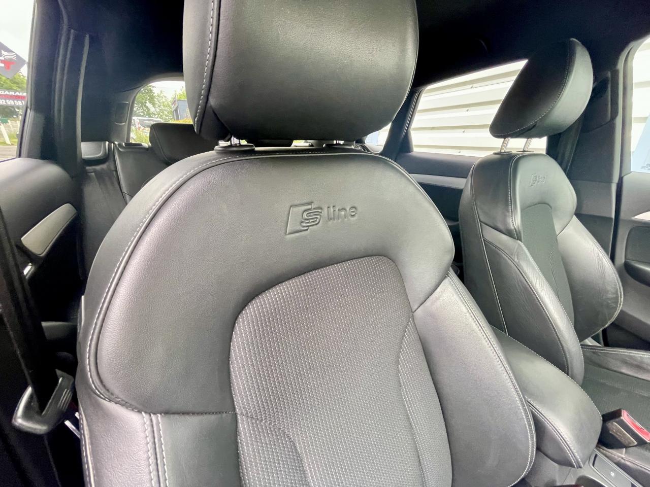 Direction électromécanique à assistance variableABS (antiblocage de roue) avec répartiteur de freinage EBV et assistance hydraulique au freinage d'urgenceEDS (blocage électronique de différentiel)ESC (contrôle électronique de stabilisation)Accoudoir central avant avec vide-pochesAirbags de têteAirbags frontaux conducteur et passager grand volume, à deux niveaux de gonflement suivant la gravité du choc, latéraux avant et arrière intégrés aux dossiers des siègesApplications décoratives S line en aluminium brossé mat sur tableau de bord, contre-portes et console centraleAppuie-têtes intégraux à l'avant et à l'arrièreASR (antipatinage) pour une motricité et une rigidité transversale optimalesAudi Parking System : système acoustique d'aide au stationnement arrièreAudi Singleframe, encadrement gris pierre d'une seule pièce sur la calandre, avec anneaux Audi anodisés au centreProjecteurs Xénon Plus incluant lave-phares, feux de jour à LEDAudi Sound SystemAvertisseur deux tons sur le moyeu du volantBanquette arrière rabattable 60/40, déverrouillage à distance des dossiers via un levier dans la garniture latérale du coffreCarrosserie galvaniséeChâssis DynamiqueCiel de pavillon en tissu assorti à la couleur intérieure, argent lunaire ou beige pistacheCiel de pavillon en tissu noirClimatisation automatique Confort Plus, 3 zones à fonctionnalités étendues et affichage numériqueColonne de direction réglable manuellement en hauteur et en profondeurConsole centrale, surélevée, avec vide-poches pouvant être utilisé comme porte-boissons avec volet ouvertContact d'allumage électroniqueContrôle de la pression des pneus avec signaux acoustique et visuel de perte de pressionDétecteur de pluie et de luminositéDéverrouillage de coffre par touche douceEclairage intérieurEcrous antivolEssuie-glace arrière, avec lavage-balayage automatique, balayage au passage de la marche arrière pendant la durée de celle-ciEssuie-glace deux vitessesFixations pour sièges enfant ISOFIX aux places extérieures arrièreFrein de stationnement electromécaniqueIndicateur de rapport de vitesse dans le système d'information du conducteurInscription “S line” sur les ailes avantInstrumentation, avec éclairage réglableJantes en aluminium coulé 5 branches doubles Audi exclusive 7J x 18”, avec pneus 235/50 R18Lave-phares haute pressionLève-vitres électriques à l'avant et à l'arrière avec protection antipincement et fonction ouverture/fermeture Confort par impulsionLunette arrière dégivrante avec minuterieMiroir de courtoisieBecquet de pavillonMoulures de seuils avec inscription S line, protection du seuil de chargement supplémentaire en acier inoxydableMoulures de seuils de portes en plastiqueOEilletons de fixation, quatre oeilletons dans le coffre pour maintenir les bagages et objetsOutillage de bord dans le coffrePack Aluminium extérieurPare-brise acoustique avec bande grisePare-chocs, laqués dans la couleur de carrosserie, bas de pare-chocs avant et arrière ainsi que bandeaux de portières en bas, noir, matPare-soleil rabattables et pivotants, côtés conducteur et passager avant, avec miroir de courtoisie occultablePhares antibrouillard halogènes, intégrés à la jupe avantPhares halogènes à surfaces libres sous vitre transparente, réglage électrique du site des phares et commande de feux de stationnement, feux diurnesPoignées de maintien avec mécanisme amortisseurPoignées de portières extérieures laquées dans la couleur de carrosseriePommeau de levier de vitesses en cuir perforéPorte-boissons double dans la console centralePréparation pour crochet d'attelagePréparation pour système de repérage satellite permettant la localisation du véhicule en cas de volProtection antidémarrage électronique, intégrée à la gestion du moteur, activation automatique par la clé du véhiculeProtections latérales anticollisionRampes de pavillon en aluminium poliRécupération d'énergie, générée lors des phases de freinage ou de décélération et système Start/Stop, permettant une économie de carburantRéglage d'appuis lombaires électriques sur 4 plans pour sièges avantRégulateur de vitesseRétroviseur intérieur jour/nuit automatiqueRétroviseurs extérieurs réglables et escamotables électriquement, dégivrants des deux côtés et buses de lave-glaces dégivrantesSécurité enfants sur les portières et les vitres électriques arrièreSellerie mixte en cuir et tissu Sprint avec estampillage S lineSièges avant Sport à réglages manuels et supports lombaires réglables électriquementSingleframe : calandre monobloc, couleur gris pierreSystème d'information du conducteur avec écran blanc TFT monochrome de 3,5 poucesTapis complémentaires à l'avant et à l'arrière, couleur assortie à celle de la moquette, en veloursTémoins de contrôle pour airbags, ESC/ASR, adaptive air suspension, EDS, frein de stationnement électromécanique, régulateur de vitesse, feux de route,feux arrière antibrouillard, clignotants, électronique moteur et protection antidémarrageTriangle de présignalisation, trousse de secours et outillage de bordVerrouillage centralisé avec fonction Autolock et télécommande à fréquence radio intégrée dans la clé du véhiculeVerrouillage électrique de la colonne de directionVide-poches dans les contre-portes à l'avant et à l'arrière pouvant contenir une bouteille de 1,5 litreVitres arrières surteintéesVitres athermiques teintées vertes, pare-brise en verre feuilletéVolant airbag Sport en cuir perforé style 3 branches multifonction badgé S line
