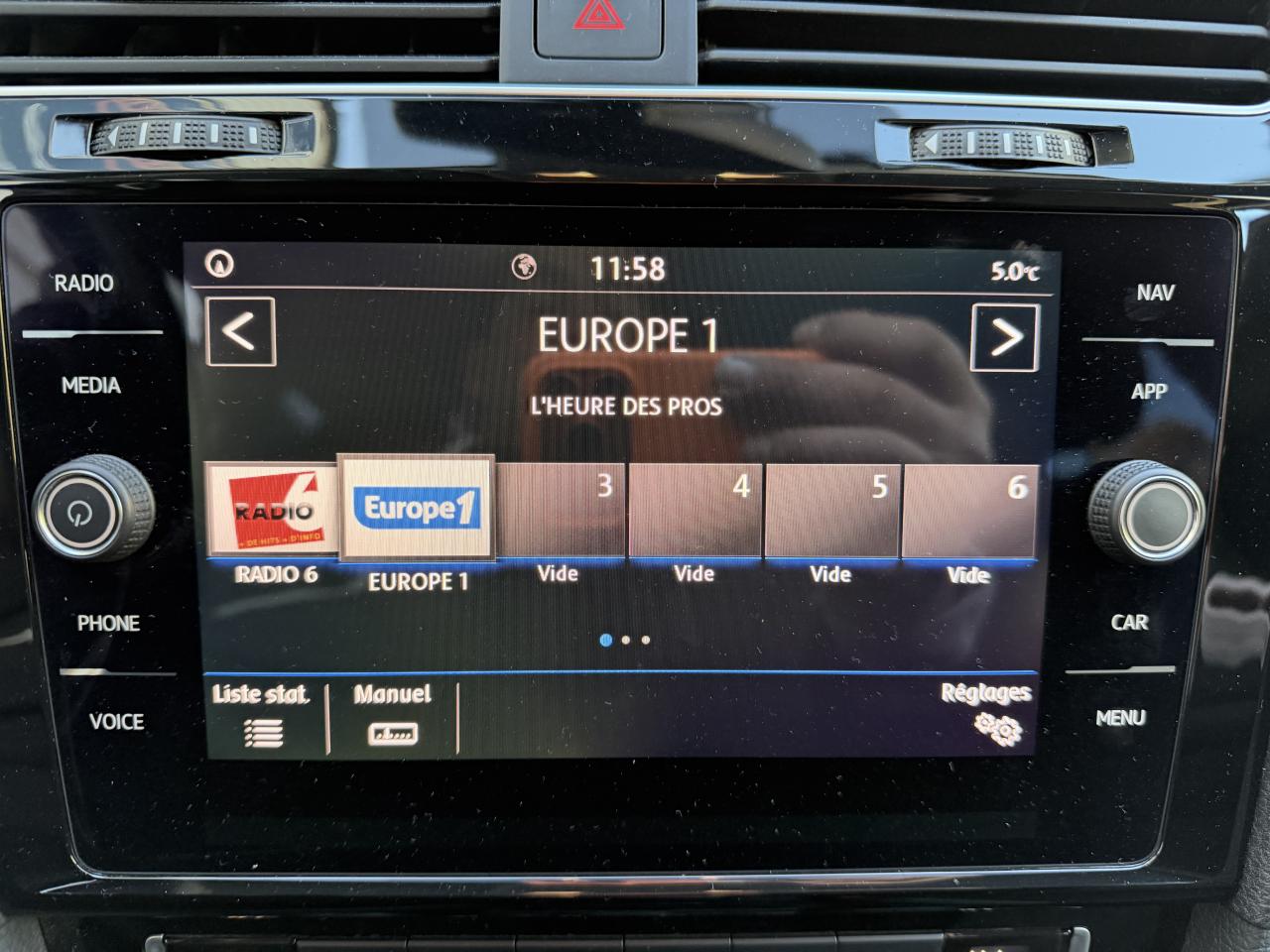 Direction électromécanique à assistance variable en fonction de la vitesseXDS : Système agissant comme un différentiel autobloquant électronique permettant une meilleure motricité en courbe grâce à une répartition optimale de la puissance et du couple sur les roues avantCorrecteur électronique de trajectoire ESPRépartiteur de freinage (EBV)Antipatinage électronique ASRPre Safe Assist' : Système proactif de protection des passagersSign Assist: Reconnaissance des panneaux de signalisation et affichage sur l'ordinateur de bord et l'écran du système de radionavigationAccoudoir central avant réglable avec compartiment de rangement, deux porte-gobelets intégrés et deux bouches d'aération derrière l'accoudoir pour les passagers arrièreAirbag genoux conducteurAirbags frontaux conducteur et passager (déconnectable côté passager)Airbags latéraux avantAirbags rideaux avant et arrièreDétecteur d’angle mort ‘Blind Spot Detection’ avec assistant de sortie de stationnementAlerte de perte de pression des pneusLight Assist : Activation ou désactivation automatique des feux de route en fonction des sources lumineuses en présenceFront assist avec freinage d’urgence et détection de piétonsAmplificateur de freinage BASAntenne arrière de toit intégréeAnti-démarrage électroniqueApplication Volkswagen Media ControlPrise USB compatible AppleApplications décoratives “piano noir laqué” pour tableau de bord côté conducteur ainsi que pour console centraleApplications décoratives spécifiques pour tableau de bord du côté passager avant ainsi que revêtements de portesAide au stationnement avant et arrière avec signaux sonores et visualisation de la distance des obstacles sur l'écran de la radioClimatisation automatique ‘Climatronic’ bi-zone avec filtre antiallergène, réglable séparément pour le conducteur et le passager avantAssistance au contrebraquageRégulateur de vitesse adaptatif (ACC)Limiteur de vitesseCar-Net "App-Connect"Interface BluetoothPack VisibilitéAumônière au dos des sièges conducteur et passager avantAvertisseur sonore 2 tons et témoin d'oubli du port de la ceinture de sécurité à l'avantBanquette arrière rabattable 2/3 - 1/3 avec accoudoir central et trappe à skisBlocage électronique de différentiel EDSLane Assistant : assistant de maintien dans la voieBoîte à gants réfrigéréeBoutons d'allumage des phares avec filet chroméCache-bagages amovibleCaméra de recul avec visualisation de la zone située à l'arrière du véhicule sur l'écran de la radio ou de la radionavigationCatadioptre dans la partie inférieure des portièresCeintures de sécurité avant trois points à enrouleur, réglables en hauteur, avec prétentionneursCerclage chromé des instruments de bord et des aérateursCompartiment de rangement au centre des deux siègesCompartiment de rangement dans le coffreConsole de pavillon avec 1 compartiment de rangement ferméDispositif de fixation pour deux sièges enfants suivant norme ISOFIX aux places extérieures arrièreEclairage diurne à LEDFatigue Detection : Système de détection de fatigue du conducteurFeux arrière à LEDFrein de stationnement électrique avec fonction d'immobilisation en pente ‘Auto-Hold'. Le véhicule se maintient automatiquement en pente et une simple action sur l'accélérateur suffit à désactiver le freinJantes en alliage léger 6,5J X 16“ 'Dublin' et pneumatiques 205/55 R16 sans écrous antivolLave-essuie-glace arrière à balayage intermittentMiroir de courtoisie éclairé dans les pare-soleilOrdinateur de bord multifonction avec affichage de la température extérieure, contrôle des élèments audios, de navigation, et du téléphonePare-chocs dans la couleur de la carrosseriePédalier en acier inoxydable brosséPeintures unies Gris UranoPoignées de portes couleur carrosseriePorte-boissons (2) à l'avant avec volet et porte-boissons (2) à l'arrière escamotablesPrise 12V dans le coffreProjecteurs antibrouillard avant avec éclairage statique d'intersectionProjecteurs avant 100% LEDProtection anti-démarrageRégulateur électronique de couple MSRRétroviseurs extérieurs couleur noirRétroviseurs extérieurs rabattables automatiquementRétroviseurs extérieurs rabattables et réglables électriquement, avec fonction mémoire et dégivrage séparéSellerie spécifique ‘IQ.DRIVE’ en tissus noir / bleu pétroleSièges avant Confort réglables en hauteur avec réglage lombaireSpots de lecture : deux à l'avant et deux à l'arrièreSystème d'antiblocage des roues ABSSystème de Freinage anti-multicollisionSystème Navigation & Infotainment ‘Discover Media'Système Start/ Stop avec récupération d'énergie de freinageVerrouillage centralisé avec télécommande à fréquence radio par clé rétractableVitres arrière électriquesVitres athermiques teintées vertesVitres avant électriquesVolant 3 branches en cuir et pommeau de levier de vitesses en cuirVolant multifonction en cuir avec commande de la radio, du système Bluetooth, de l'ordinateur de bordVolant réglable en hauteur et en profondeur
